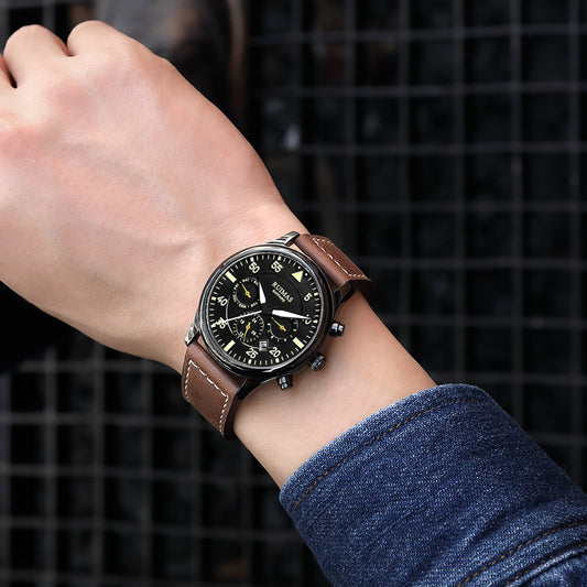 RUIMAS Men Mechanical Watches Fashion Leather Strap Sapphire Automatic Movement Wristwatch Luminous Clock Male Date Week Display 6769